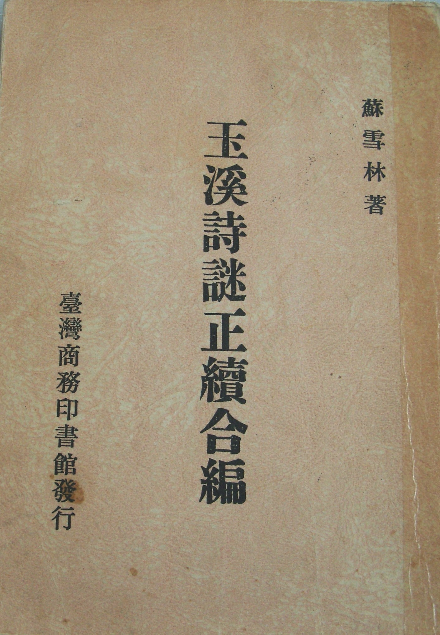 苏雪林先生在唐诗研究领域,除了闻名遐迩的《唐诗概论》外,还有一部重要著作《玉溪诗谜正续合编》(1988年台湾商务印书馆出版)。是书是将1927年上海北新书局版《李义山恋爱事迹考》网上配资114(正编),与去台后陆续所写关于李商隐恋史考证文字(续编),增补重排,以旧作为“正”,新撰为“续”,合为一集网上配资114,故名。正续两编出版相隔61年。