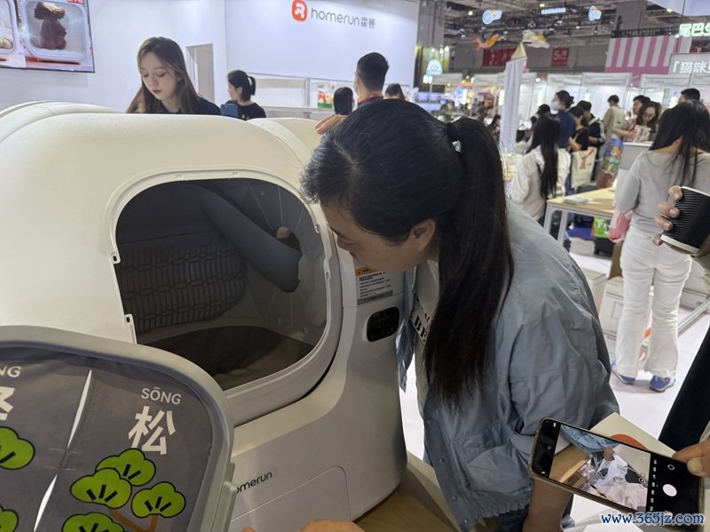 “这台宠物智能猫厕所可以说是国内在售所有同类产品中唯一一台可自动补砂,并且容量最大的猫砂盆,内里容积在106升,比普通款多了近50%。”霍曼是宠物智能电器的领导品牌,深耕宠物智能电器十年,智能猫厕所、智能喂食器、宠物空净等产品在展会现场受到热烈关注。公司技术经理唐坤表示,考虑到现在多宠家庭以及宠物主外出、追求便捷高效管理的需求痛点,团队设计了“大猫也能舒服如厕”的智能猫砂盆,右侧储砂盒容积达8L,加满一次可以使用半个月。内设的微波雷达感应和自动称重功能可有效防止猫咪被夹。霍曼也将全渠道上市该款智能猫厕所的配件,如摄像头和除臭凝胶,填补AI远程监控和除臭抑菌功能的空白。新民晚报记者了解到,目前该款猫厕所在跨境电商亚马逊等渠道均有布局,海外接受度很高。